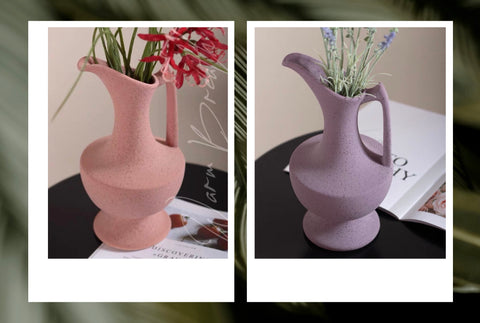 The making of these tall, decorative flower vases is the collision & infusion of medieval design and pop culture. Handmade with finest clay and matte finished with dopamine colours, these tall medieval style ceramic flower vases add a playful while also rustic touch to your space.