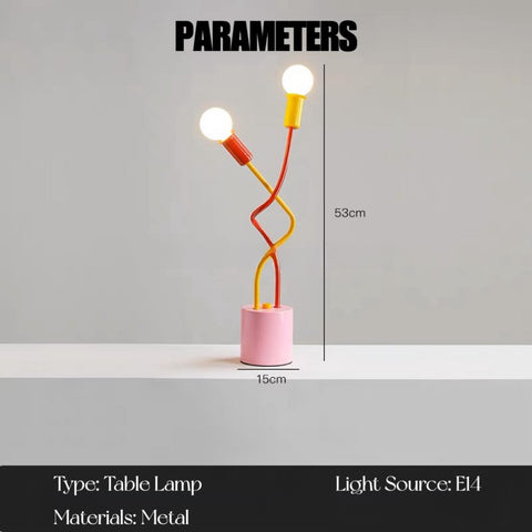 Whimsical Eclectic Memphis Cute Whimsical Sprout Table Lamp – Decorative Dopamine Metal Desk Lamp